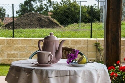En el salón hay una zona de descanso de lo más acogedora, con sillones, televisión y una chimenea que se convertirá en vuestra compañera ideal en las noches más frías. Y durante el buen tiempo, nada mejor que relajarse en el Porche-terraza privado o en la zona ajardinada individual, donde hay mesa, sillas y parrilla.